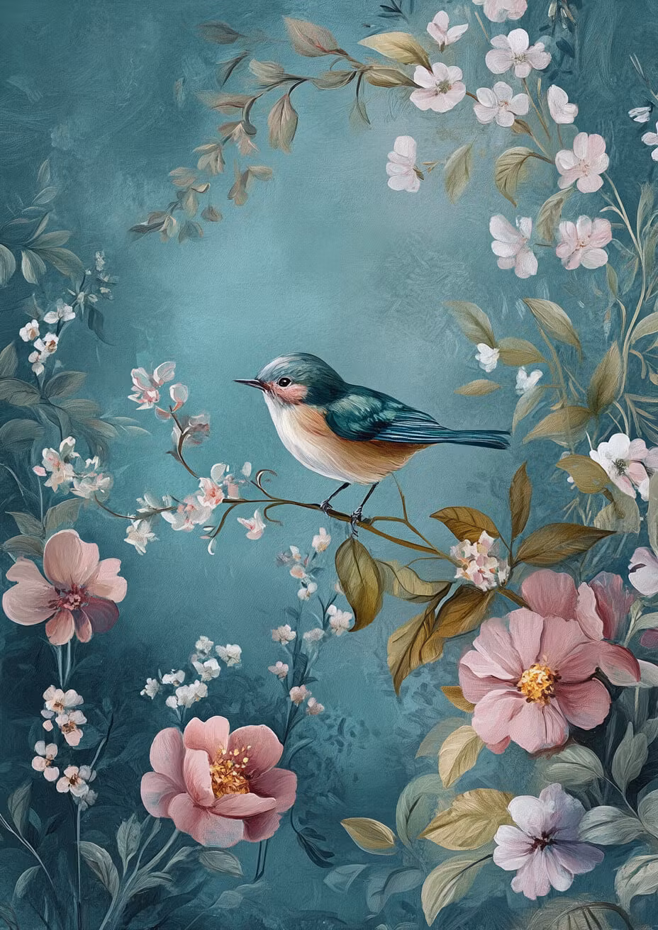 Dubbelt kort med kuvert - Fågeln bland blommor (6 st - 15 kr/st)