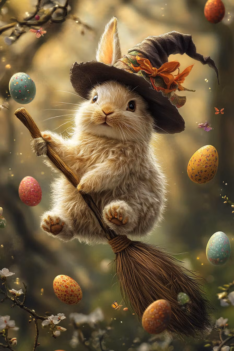 Enkelt Påskkort - Kanin mot Blåkulla (10 kort)