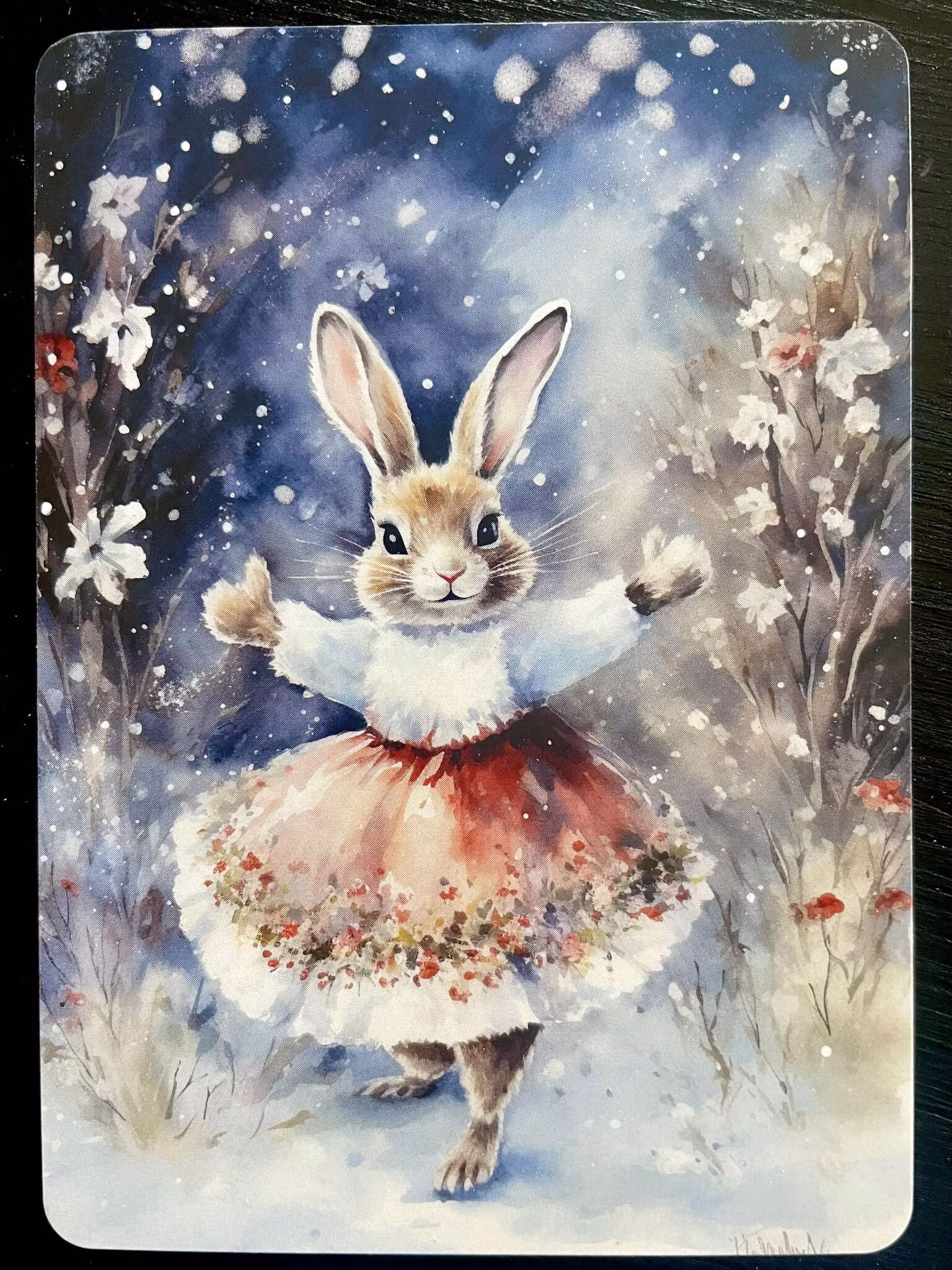 Enkelt kort - Kanin med vacker röd kjol (10 stycken)