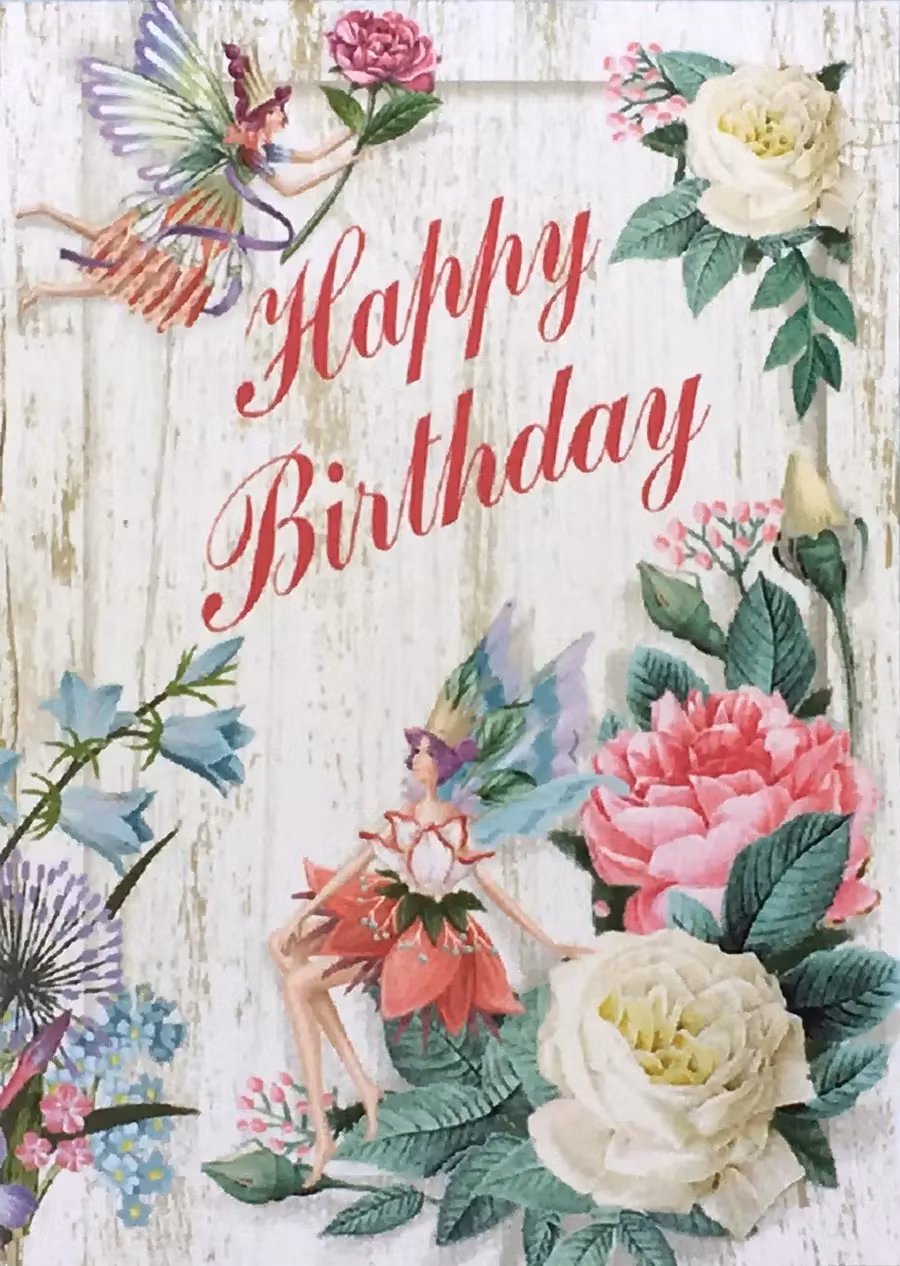 Det följer med ett litet kort där du kan skriva din hälsning till mottagaren. På kortet finns texten "Happy Birthday".