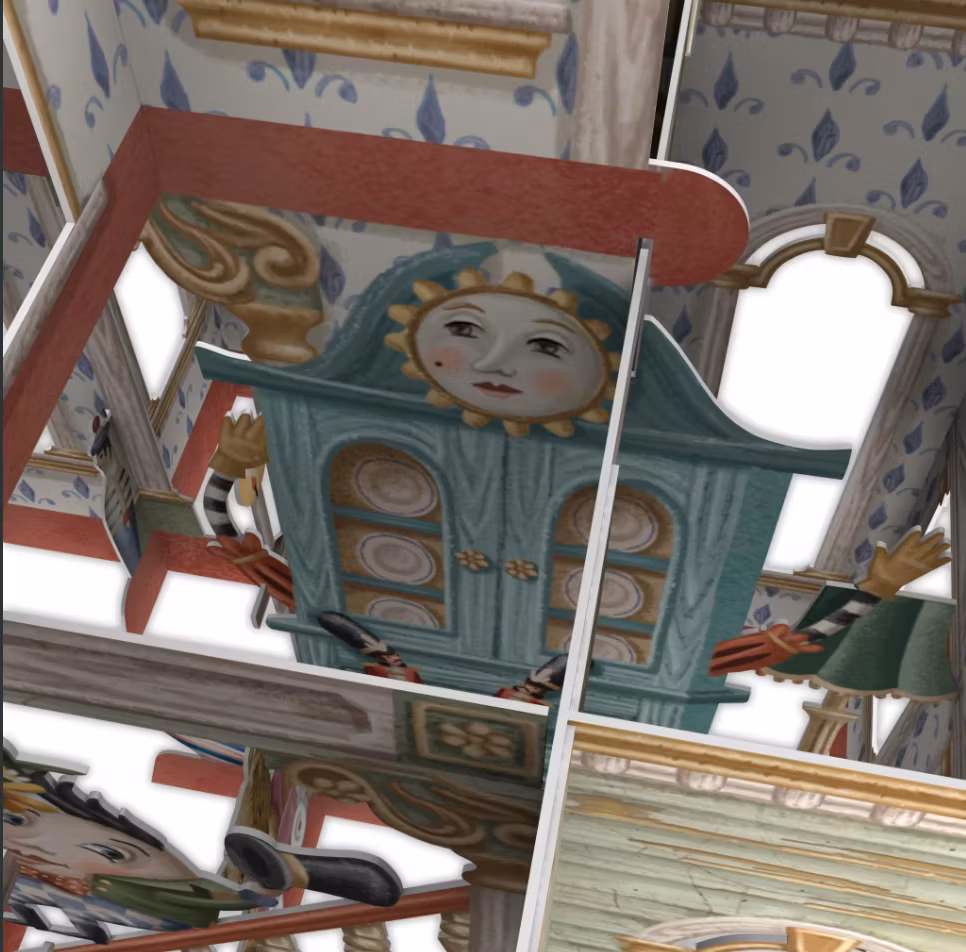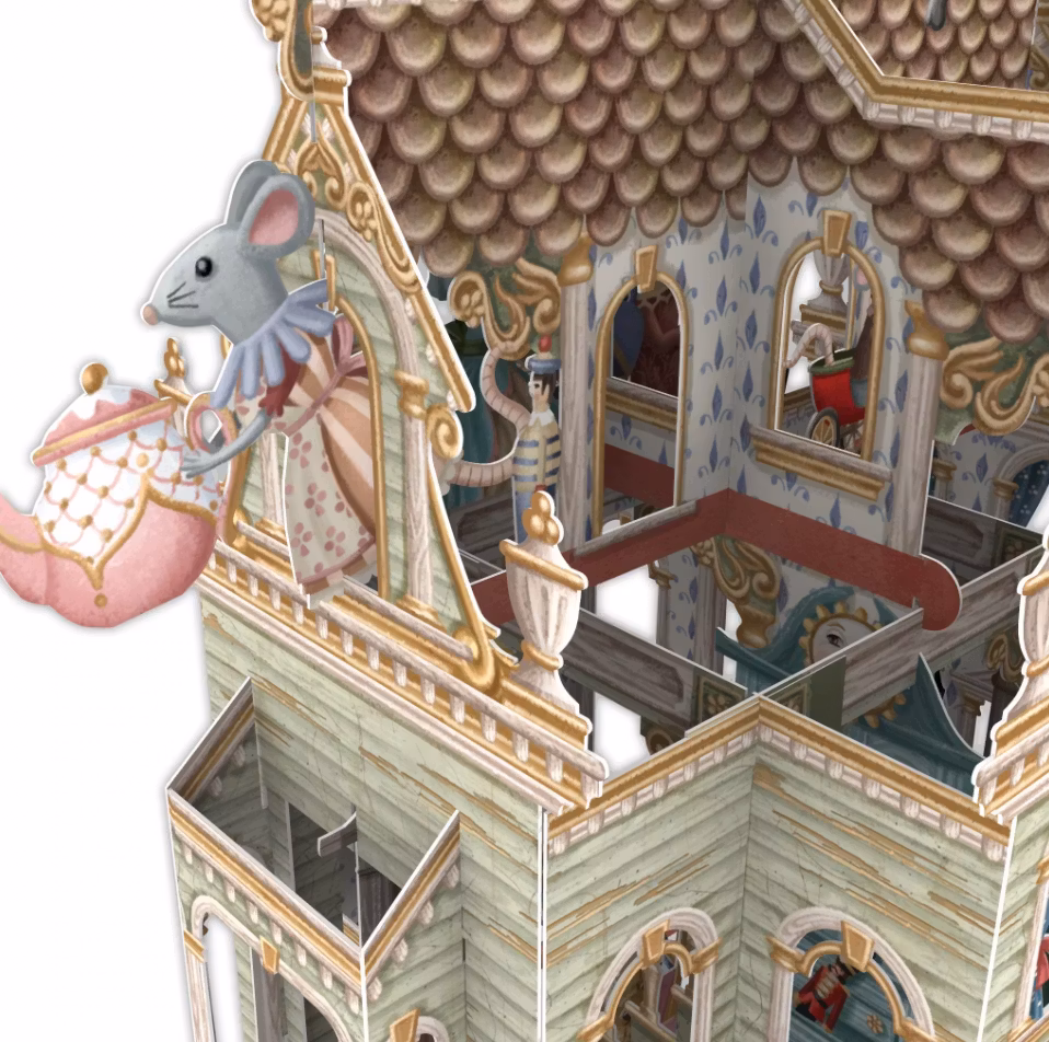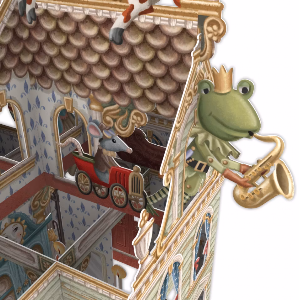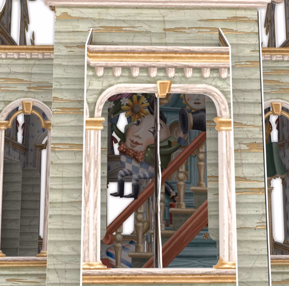 Här är motivet ett gammalt antikt dockhus. Vilka bor inne i det fina huset? Det ser du om du vänder och vrider lite på kortet.