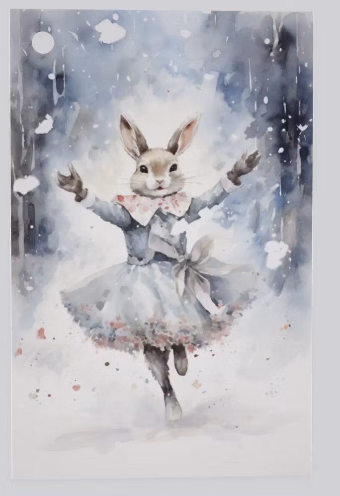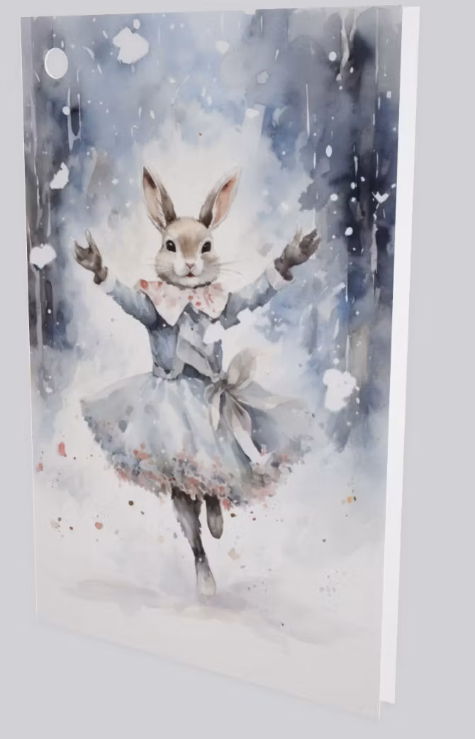 Dubbelt kort med kuvert - Dansande kanin i snön (6 kort)