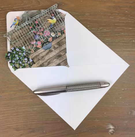 Det följer med ett vitt kuvert som passar till kortet.