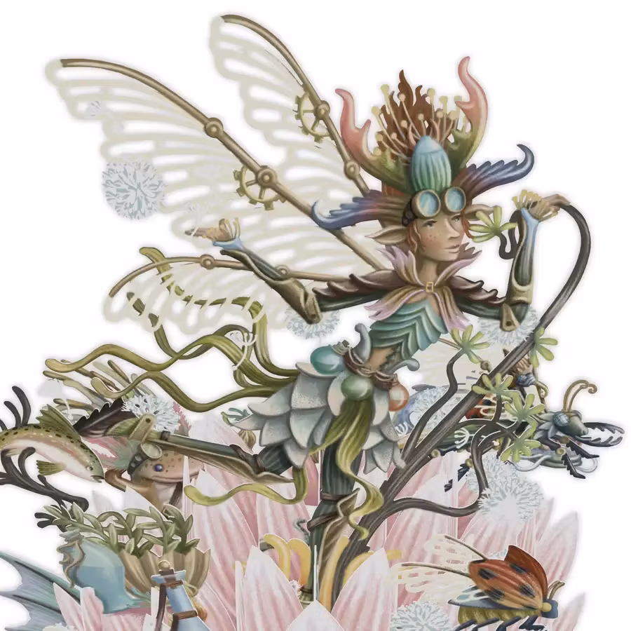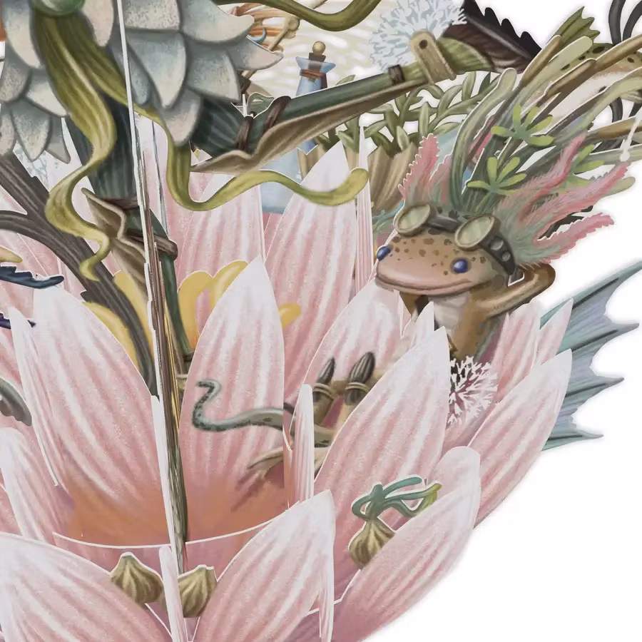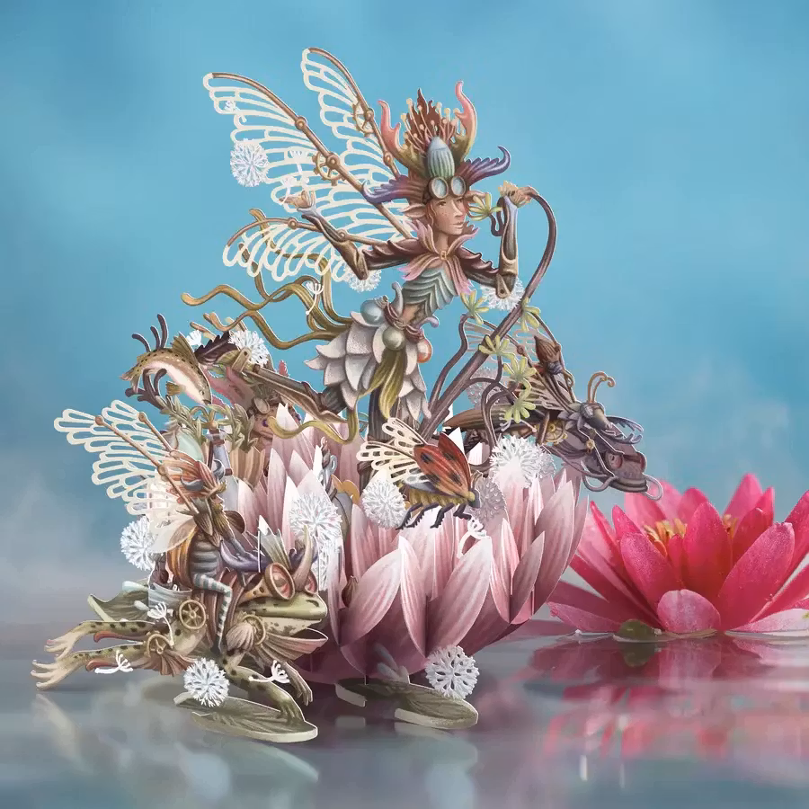 Härligt kort som levereras platt till mottagaren men som sedan viks upp och ut för att förvandlas till en vacker prydnad att ha på bordet.