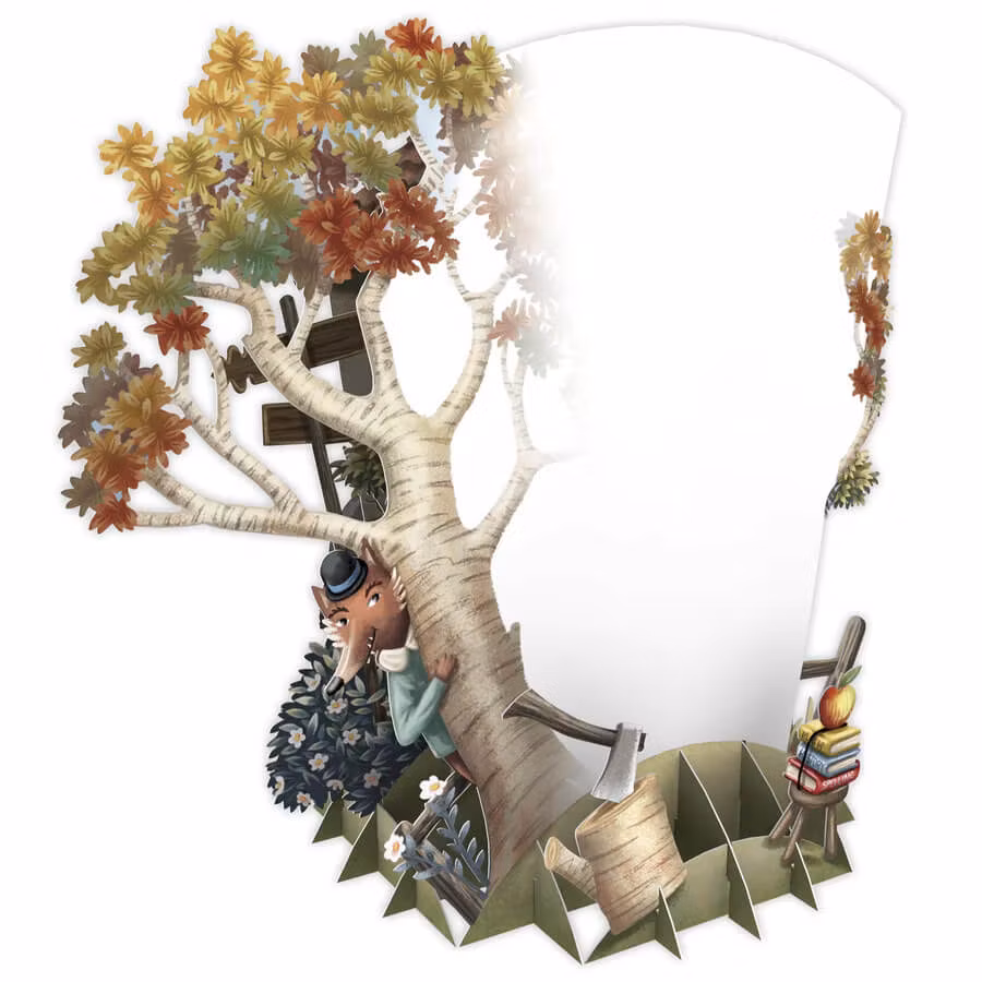 Härligt kort som levereras platt till mottagaren men som sedan viks upp och ut för att förvandlas till en vacker prydnad att ha på bordet.