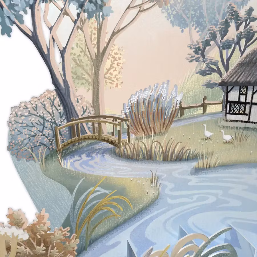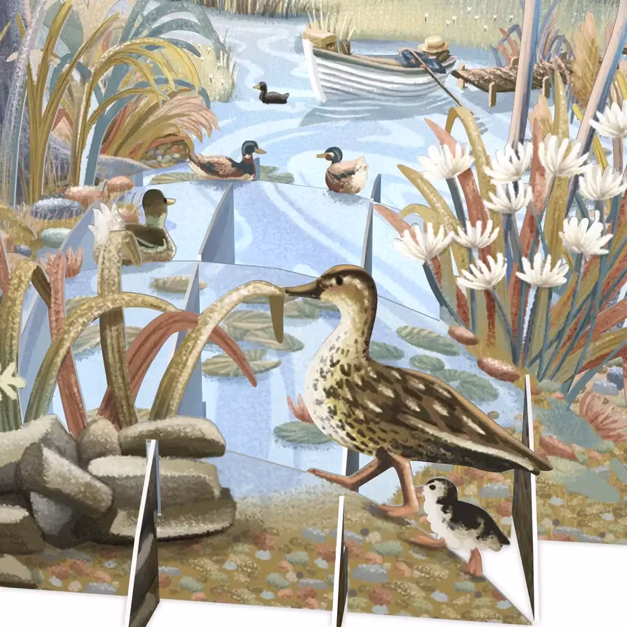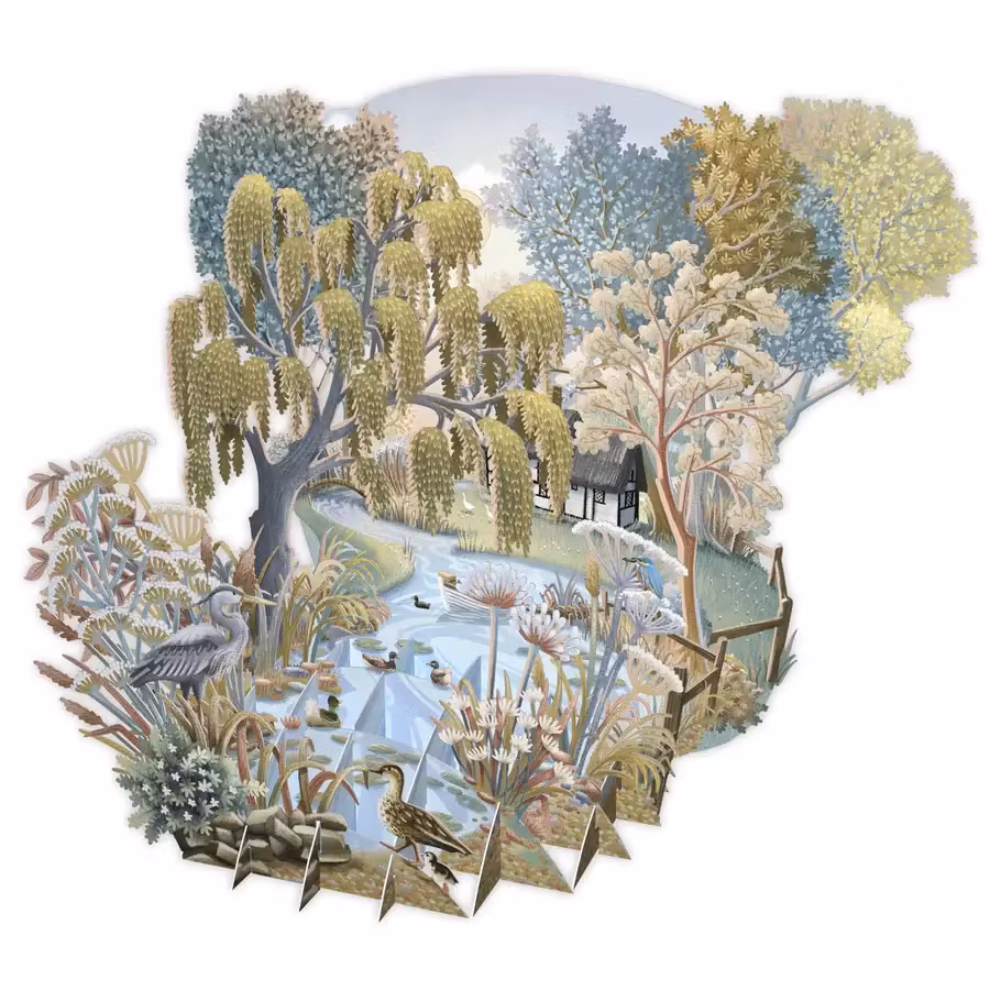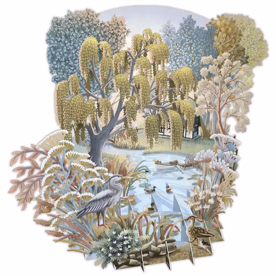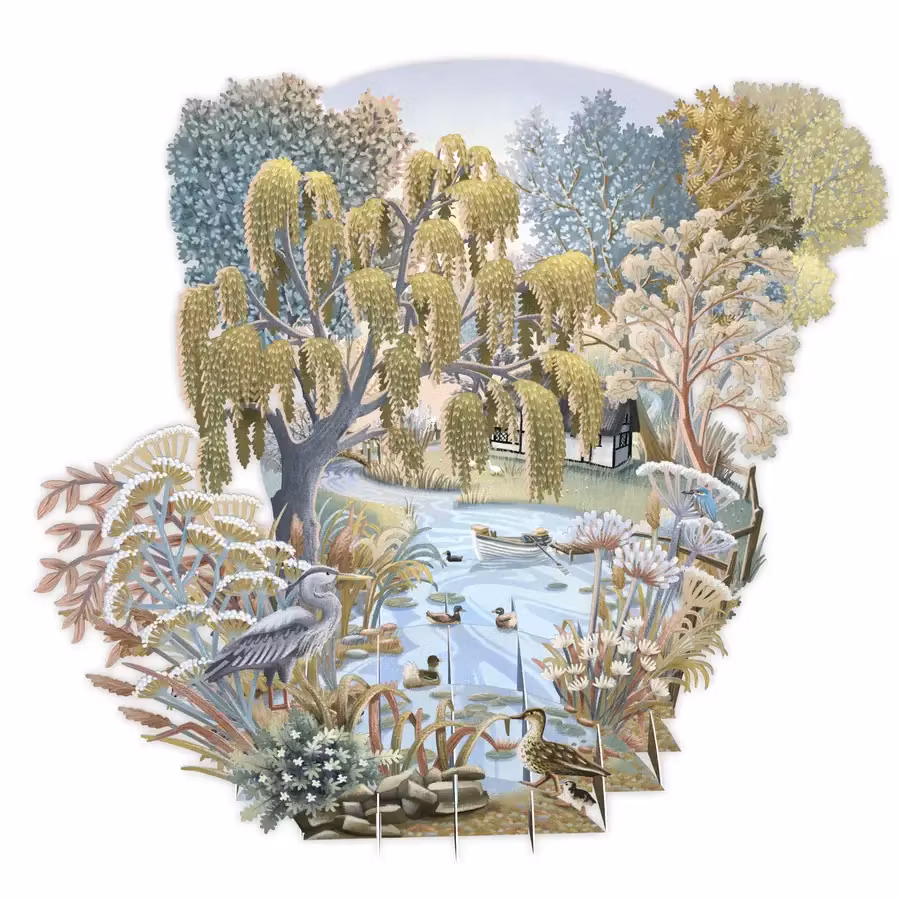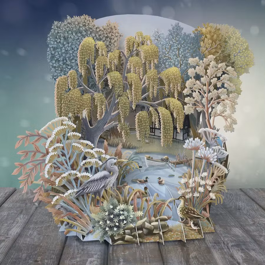 Härligt kort som levereras platt till mottagaren men som sedan viks upp och ut för att förvandlas till en vacker prydnad att ha på bordet.