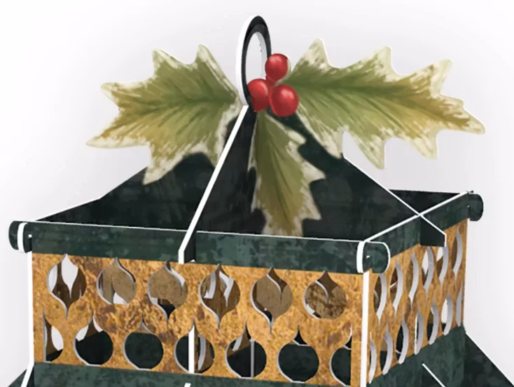 Härligt julkort som du viker ut och viker upp. Här är det en förtrollad lykta som innehåller ett par som åker skridskor.