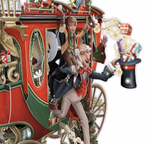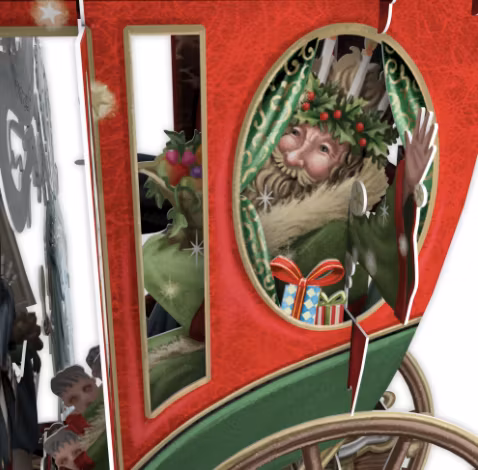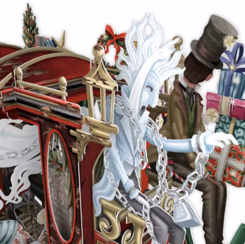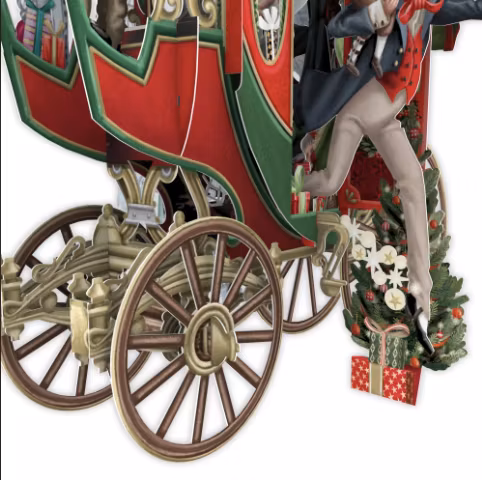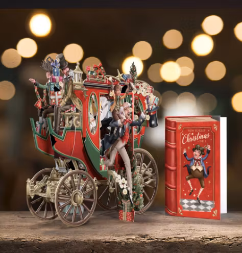Sagan om den elake Ebenezer Scrooge som blir omvänd på julafton. Underbart julkort som du viker ut och viker upp.