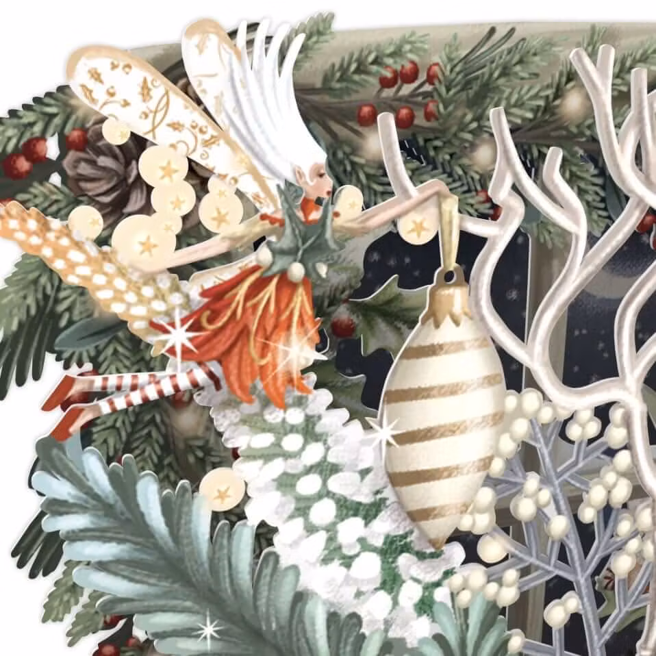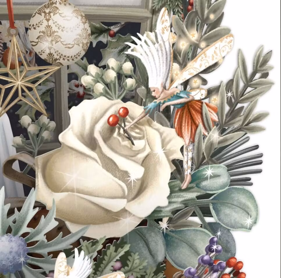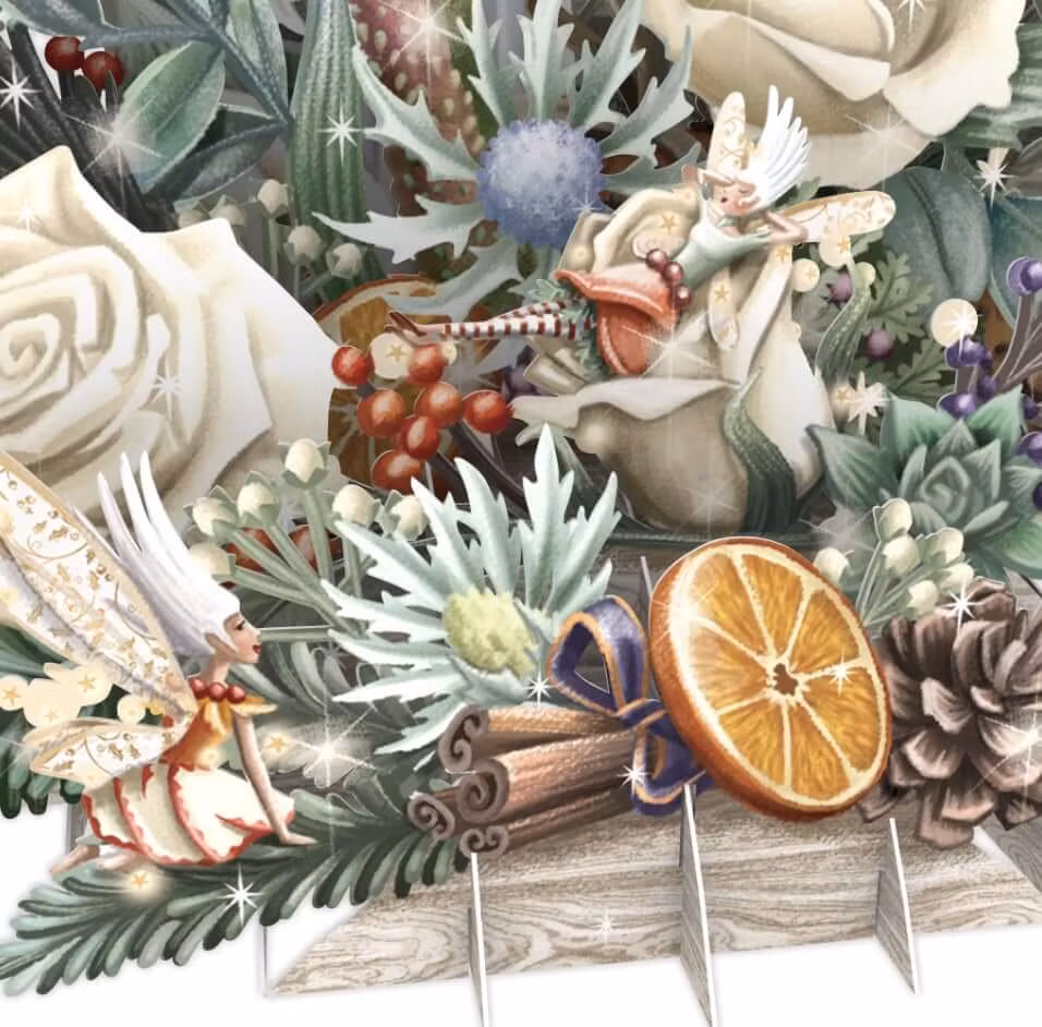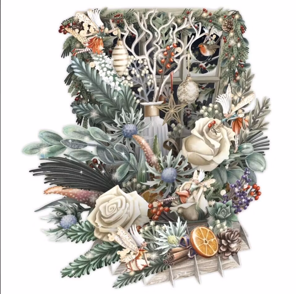 Härligt julkort som du viker ut och viker upp. Här ser vi alla julens vackra blommor..