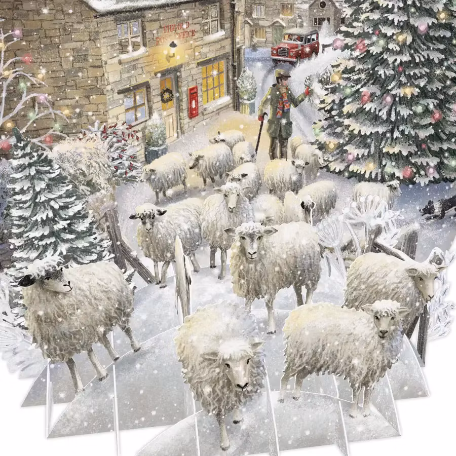 Här ska alla fåren hem till den varma ladan. Kan du hitta hunden som gömmer sig bland dem?