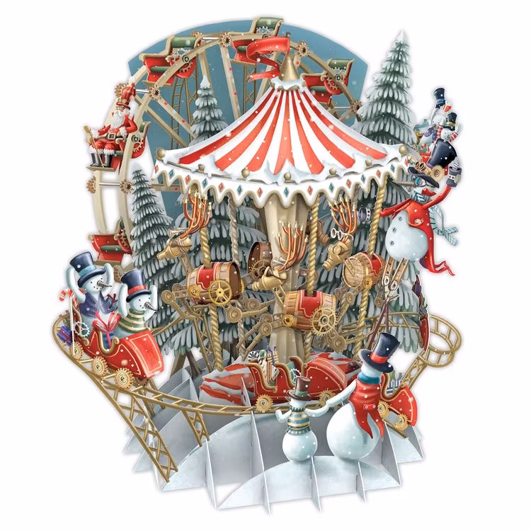 Här är motivet ett tivoli fullt av snögubbar, renar och även tomten syns på ett hörn.