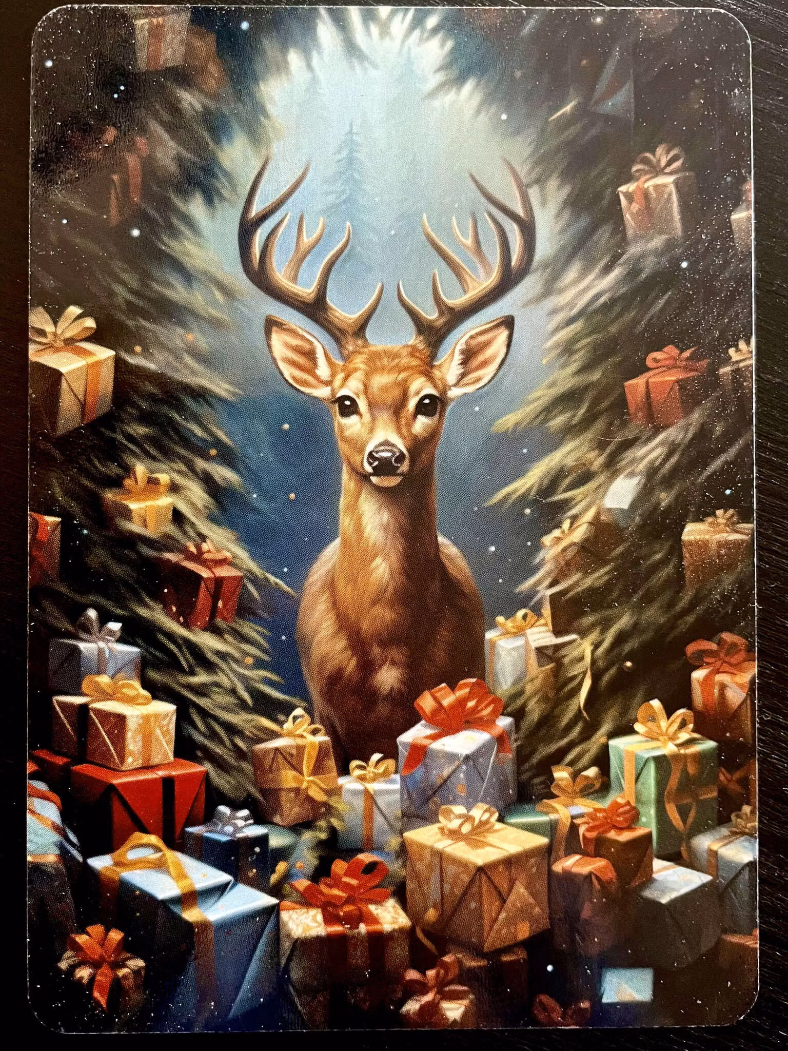 Enkelt kort - Hjort bland julklappar (10 stycken)