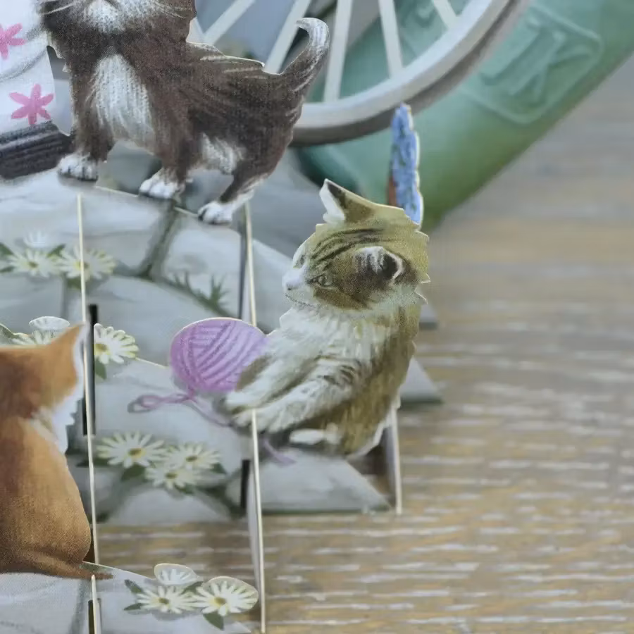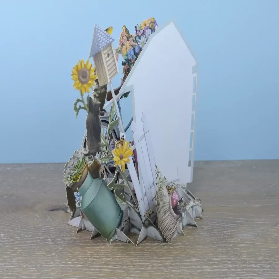 Härligt kort som levereras platt till mottagaren men som sedan viks upp och ut för att förvandlas till en vacker prydnad att ha på bordet.