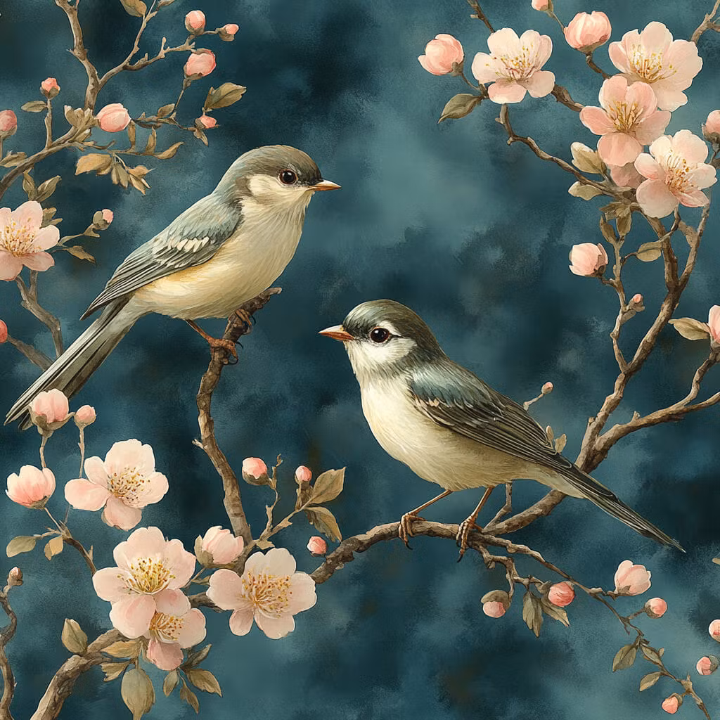 Litet, fint kort med de vackra fåglarna mot den djupblå bakgrunden.