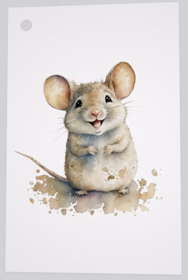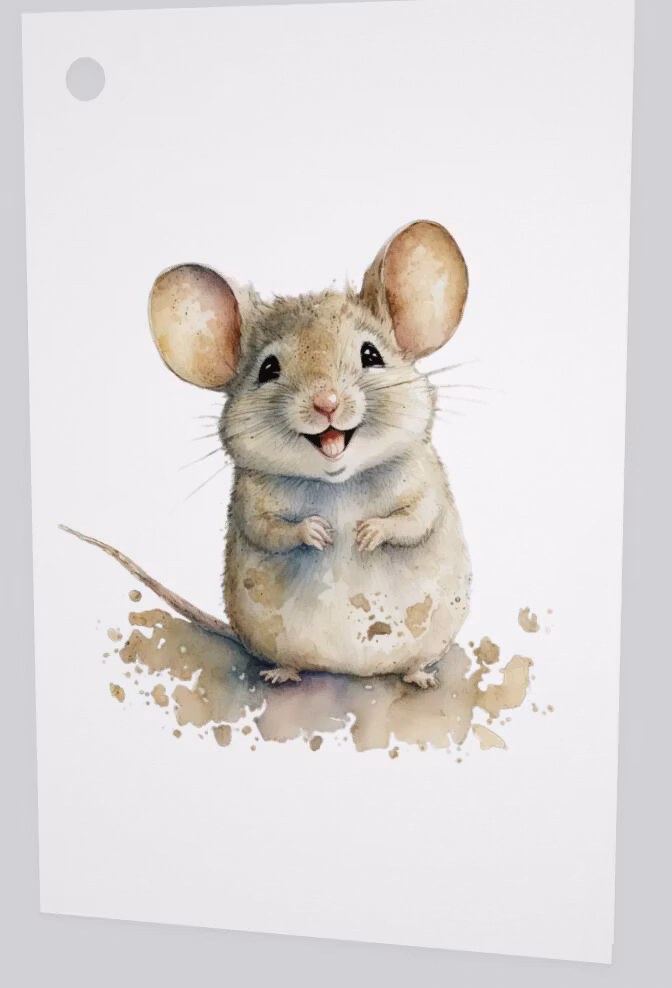 Litet kort utan kuvert - Glad liten mus (10 stycken)