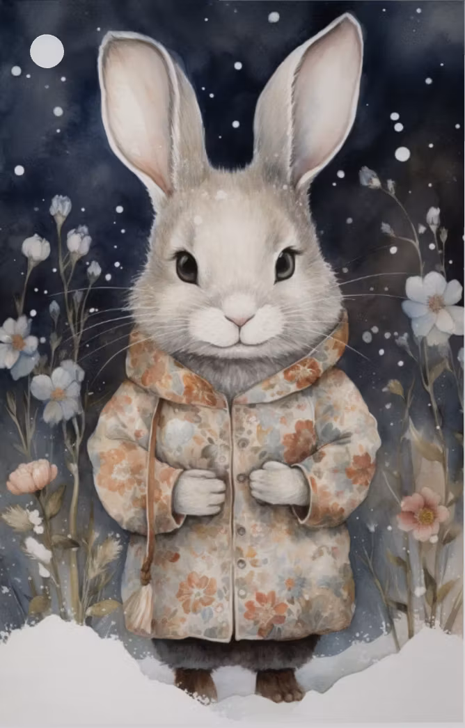 Litet kort utan kuvert - Kanin i vacker vinter (10 stycken)